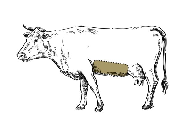 Grafik von einem Rind, wo das Skirt Steak eingezeichnet ist.