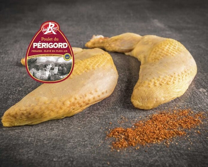 Ein edles Stück Geflügelfleisch vom französischen Maishähnchen. Das Bruststück mit Haut und dem Oberknochen des Flügels bietet ein zartes, festes und saftiges Fleisch mit intensivem Aroma. Aufgrund der Fütterung mit Mais erhalten Fleisch und Haut ihre typische, leicht gelbliche Farbe.