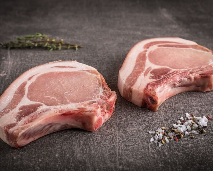 Scharf von beiden Seiten angeröstet und sanft medium gegart gelingt das Fleisch zart und saftig. Zur Zubereitung belässt man die Schwarte in der Regel am Fleisch und schneidet diese leicht ein, um Verformungen zu verhindern. Bei diesen Dry Aged Koteletts schneidet man die Schwarte allerdings ab, da diese trockengereift wurde.