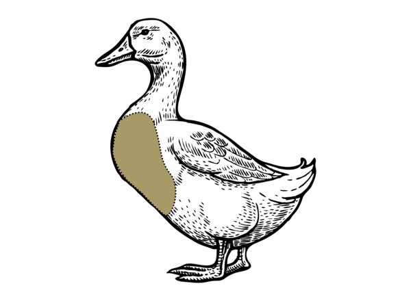 Grafik von einer Ente, wo die Brust eingezeichnet ist.