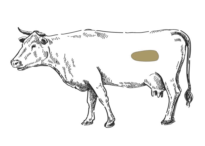 Grafik von einem Rind, wo das Hanging Tender eingezeichnet ist.